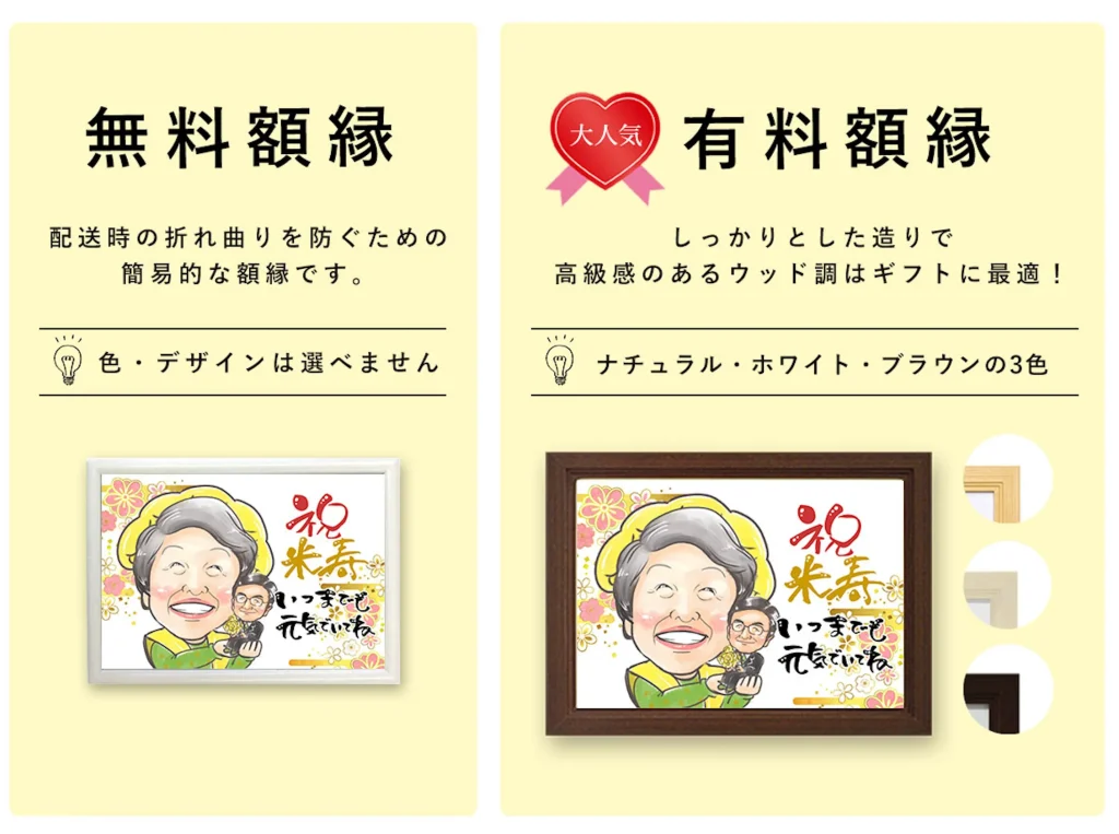 当店の似顔絵は全て額縁へ入れた状態でお届けしております。
