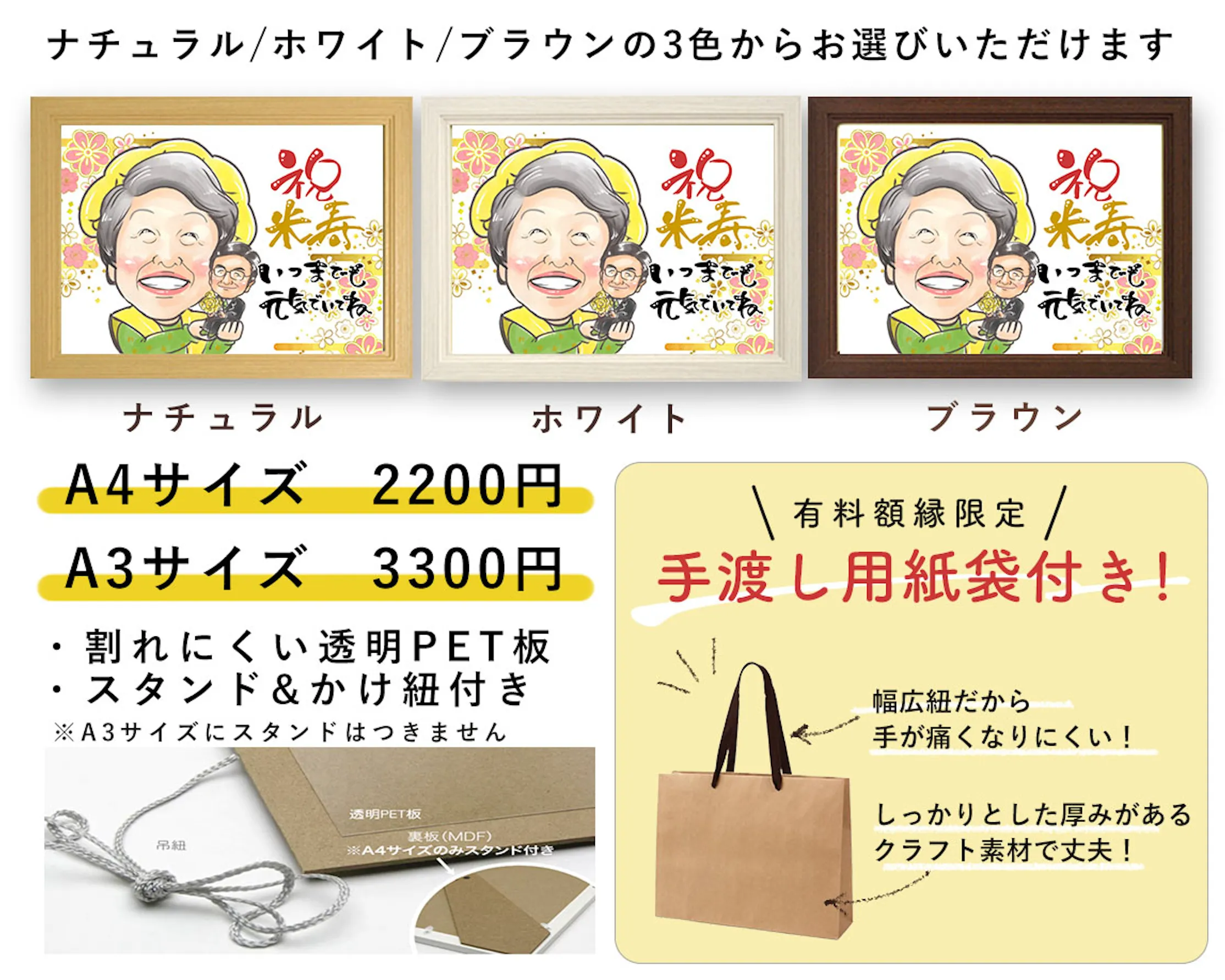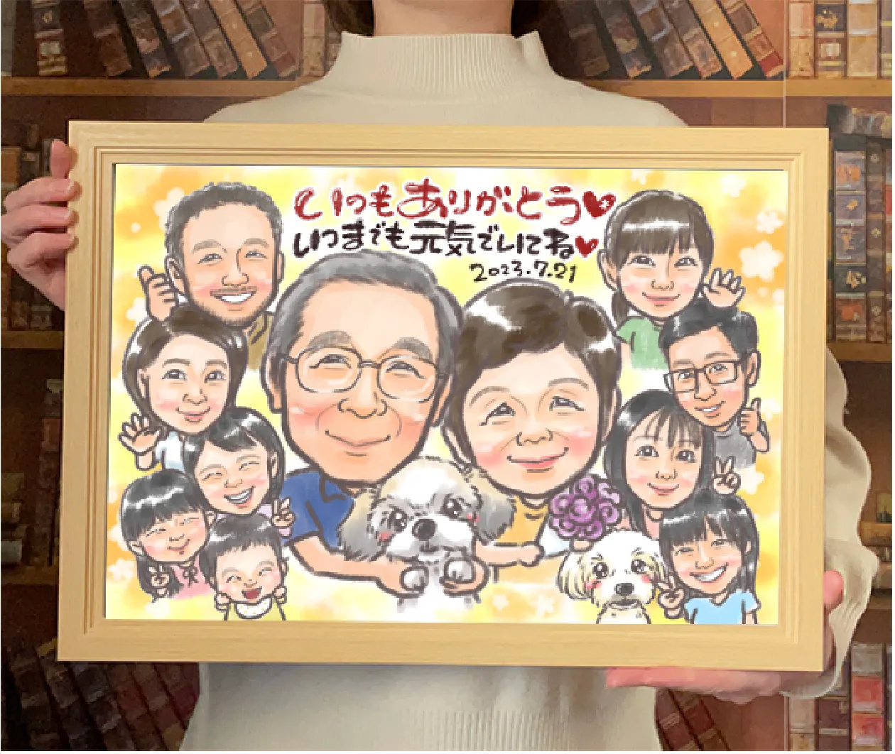 当店の似顔絵は全て額縁へ入れた状態でお届けしております。